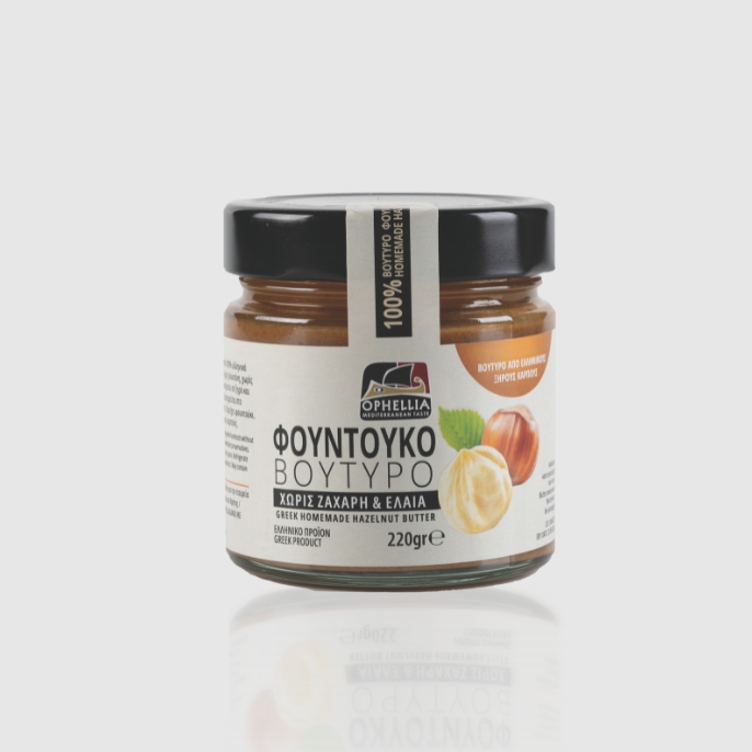 Ophellia Hazelnut Butter is made from 100% ground hazelnuts, without additives, sugar or palm oil. Rich in healthy fats, protein and vitamins E & B, it is an ideal choice for a healthy diet, offering energy and flavor in every spoonful.