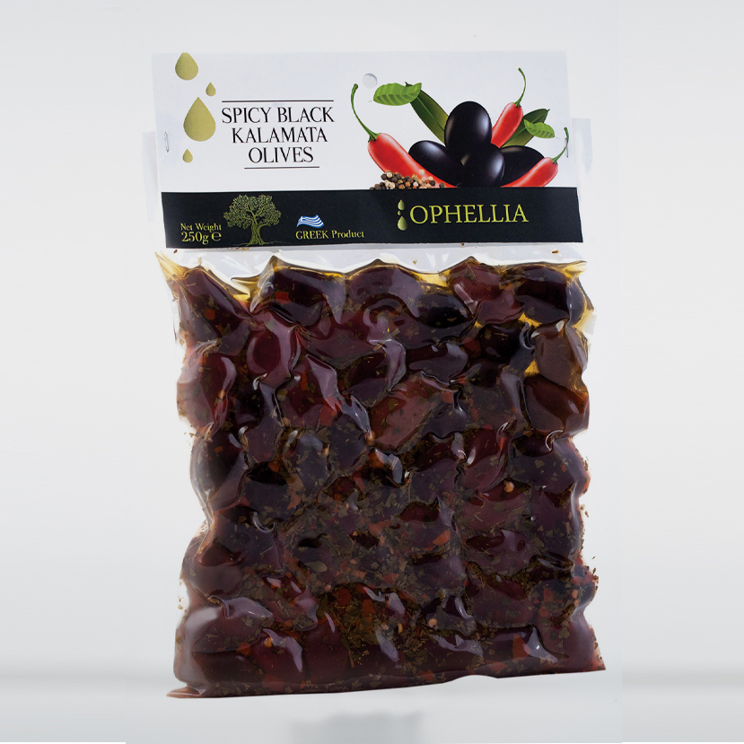 Spicy Kalamata Olives vacuum packed 250 gr.