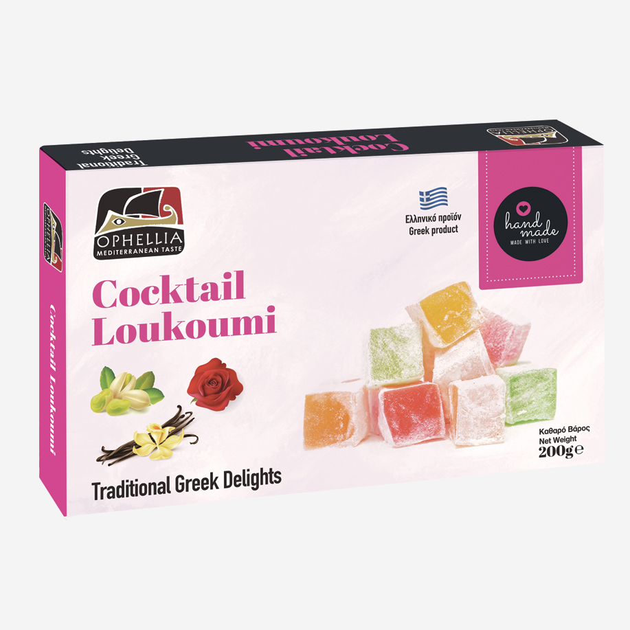 Mix of loukoumi of different flavors and colors. Ideal for gifts, celebrations or traditional treats. Made with a traditional recipe, no artificial colors.
