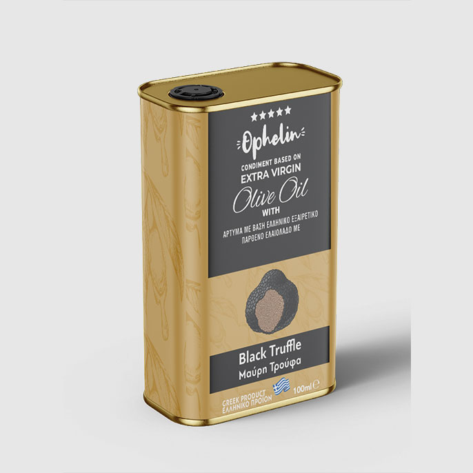 Оливковое масло первого холодного отжима Ophellia с черным трюфелем, 100 мл, перенесет вас на ваш стол в атмосферу греческой деревни. Ароматизированное изысканным черным трюфелем, оно идеально подходит для жареного мяса, картофеля, овощей и маринадов.