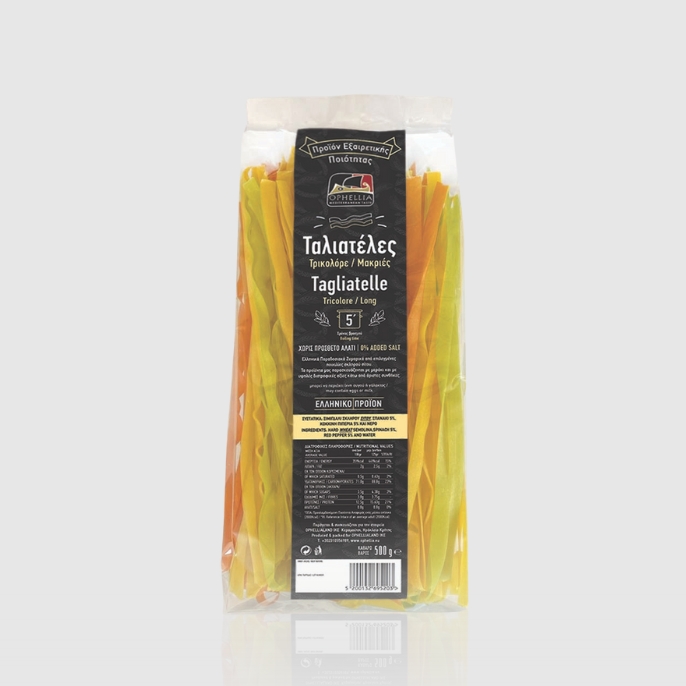 Тальятелле Ophellia Tricolor изготавливаются из отборной манной крупы из твердых сортов пшеницы с добавлением натуральных экстрактов шпината и томатов, что обеспечивает яркие цвета и насыщенный вкус. Эффектный внешний вид этих тальятелле придаёт каждому блюду неповторимый характер.